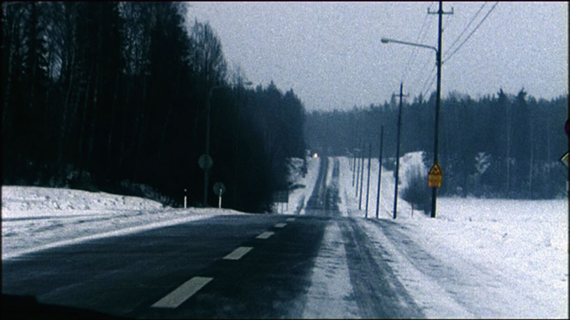 Elena Näsänen FI Drive 9min 15sec 2003 Drive is a road movie set in a snowy countryside starring a woman in her thirties. The sound track introduces the elements of a thriller. The hypnotic journey and the thrill of speed combine at the borderline of the real and the imagined. |