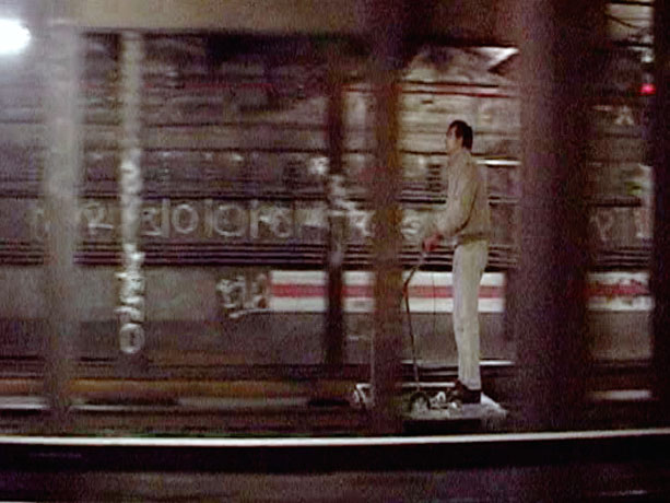 Mischa Leinkauf + Mathias Wermke DE Zwischenzeit 06min 32sec 2008 When a thought idea comes to life, when an imagined picture starts to exist in reality, then fiction is real. A draisine on its way on the train tracks of a metropolis. Endlessly running, without aim. The film Zwischenzeit (time-in-between) does not tell a story. It tells a state of affairs. A profession of love to the moment. |