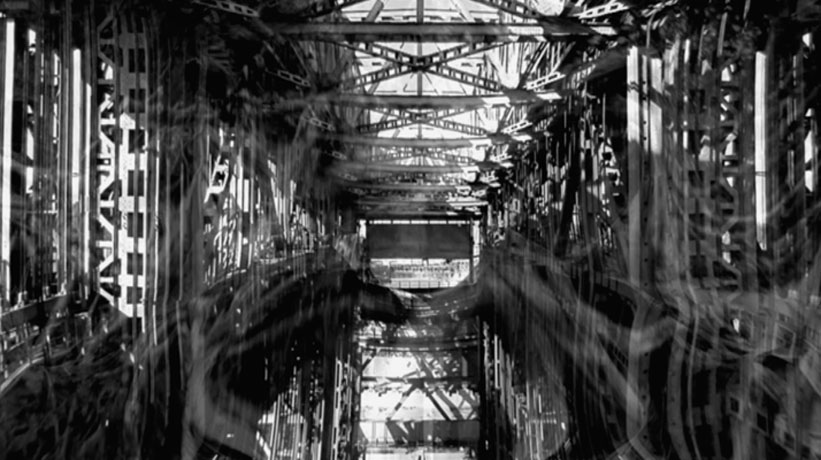 Ivar Smedstad NO mekanisk<->organisk 5min 06sec 2009 mekanisk<->organisk is a decomposition that transmutes a mechanical structure into organic matter through one single amorphous passage. The enormous ship lift Schiffshebewerk Niederfinow, a monument of the mechanical age, is dissected and regenerated into the spectra of culled trees in a desolate forest. |