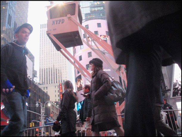 Michael Schuwerk US Happiness is the Right Choice 13min 51sec 2009 'Happiness is the Right Choice' is an experimental video shot in New York City's Times Square and Financial District. The video was conceived as a disembodied and fragmented memory of the present‹a document of sorts‹surveying a terrain where global industry, tourism and semi-public space intersect. In the video sequential photographs and footage from a hidden camera are paired with fragments of street interviews and ambient audio captured on-site, sampled and created‹pulling from a two-year period leading up to and including the recent financial crisis. |