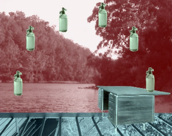 Sari Carel US Olive Olive Glove 8min 10sec 2009 In Olive Glove a stage-like territory is pried open within a pristine natural setting that has undergone a dye-job. The images of "perfect landscape" are being overlaid with Australian catalogue-furniture, thus rising questions of desires for modernity, living standarts and of romantic ideas of wilderness. |