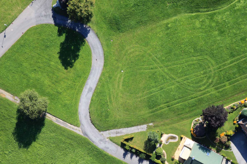 Line-Flight Graz-Maribor 120:12min 2012 A 56-kilometer long line-flight directly from Graz to Maribor generates a continuously filmed portrait of the living landscape along a straight line between the two closest Cultural Capitals of Europe (seen from a 200 meter height, perpendicular to the ground, point of view). |